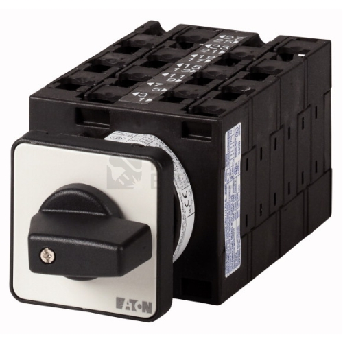 Vačkové spínače podle ČSN/EN60947, konstrukční velikost T3, tvar při montáži, přední štítek 48x48, stupeň krytí vpředu IP65 s černou pákou, jmenovitý trvalý proud Iu 32 A, jmenovité provozní napětí Ue 690V, příslušenství k dodání podle údajů v katalogu Vačkové spínače T