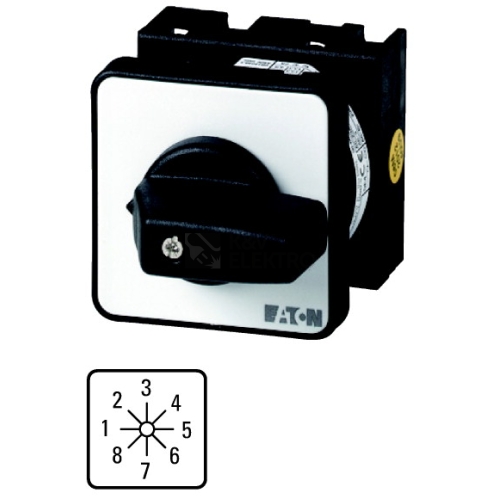 Vačkové spínače podle ČSN/EN60947, konstrukční velikost T0, centrální upevnění do upevňovacího otvoru 22,3 mm, přední štítek 48x48, stupeň krytí vpředu IP65 s černou pákou, jmenovitý trvalý proud Iu 20 A, jmenovité provozní napětí Ue 690V, příslušenství k dodání podle údajů v katalogu Vačkové spínače T. Konstrukční formy všeobecně: skříňky pro povrchovou montáž z izolačního materiálu, montáž, centrální upevnění, základní montáž, montáž do rozváděče IVS
