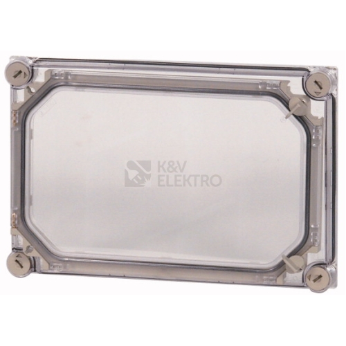 Kryt transparentní s dveřmi, stupeň krytí IP65, patentované upevňovací šrouby víka s integrovaným vyrovnáním přetlaku, upevňovací šrouby s možností plombování, průchozí zapěněné těsnění, vestavná hloubka s montážním plechem=125 mm, použitelný pro dolní díly CI E, X a V, provedení uzávěrů dveří: ruční ovládání