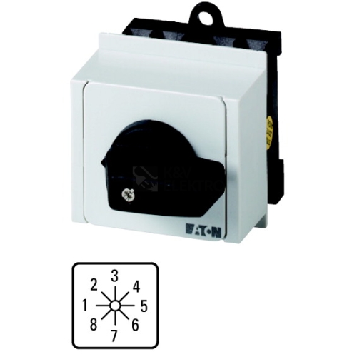 Vačkové spínače podle ČSN/EN60947, konstrukční velikost T0, konstrukce rozvaděče, hmotnost při montáži podle normy DIN 43 880, nasazovací na montážní lištu, stupeň krytí vpředu IP30 s černou pákou, jmenovitý trvalý proud Iu 20 A, jmenovité provozní napětí Ue 690V, příslušenství k dodání podle údajů v katalogu Vačkové spínače T. Konstrukční formy všeobecně: skříňky pro povrchovou montáž z izolačního materiálu, montáž, centrální upevnění, základní montáž, montáž do rozváděče IVS