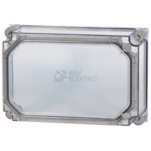 Kryt transparentní s dveřmi, stupeň krytí IP65, patentované upevňovací šrouby víka s integrovaným vyrovnáním přetlaku, upevňovací šrouby s možností plombování, průchozí zapěněné těsnění, vestavná hloubka s montážním plechem=200 mm, použitelný pro dolní díly CI E, X a V, provedení uzávěrů dveří: ruční ovládání