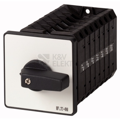 Vačkové spínače podle IEC/EN60947-3, konstrukční velikost T5B, 690 V/63A, stupeň krytí vpředu IP65, T-rukojeť, konstrukční formy všeobecně: Skříňky pro povrchovou montáž z izolačního materiálu, montáž základní montáž. Výkonové, robustní a kompaktní vačkové spínače T se používají v průmyslu, řemeslech i technickém vybavení budov. Na výběr je celá řada standardních obvodů. Jako doplněk se realizují zvláštní obvody specifické pro jednotlivé zákazníky. Zde jsou možnosti téměř neomezené. Program spínačů doplňuje rozsáhlé příslušenství a doplňuje možnosti využití. Všechny proudové dráhy jsou vybaveny dvojitě přerušovanými kontakty.