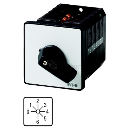 Vačkové spínače podle IEC/EN60947-3, konstrukční velikost T5B, 690 V/63A, stupeň krytí vpředu IP65, T-rukojeť, konstrukční formy všeobecně: Skříňky pro povrchovou montáž z izolačního materiálu, montáž základní montáž. Výkonové, robustní a kompaktní vačkové spínače T se používají v průmyslu, řemeslech i technickém vybavení budov. Na výběr je celá řada standardních obvodů. Jako doplněk se realizují zvláštní obvody specifické pro jednotlivé zákazníky. Zde jsou možnosti téměř neomezené. Program spínačů doplňuje rozsáhlé příslušenství a doplňuje možnosti využití. Všechny proudové dráhy jsou vybaveny dvojitě přerušovanými kontakty.
