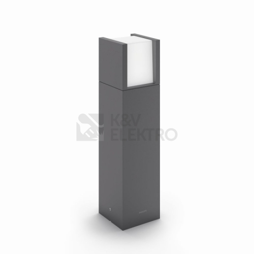Stojanové venkovní LED světlo Philips Arbour v antracitově šedé barvě je tvořeno kostkou světla zasazenou do odolného, tlakově litého hliníkového rámu. Důmyslný design vyzařuje paprsky rozptýleného hřejivého bílého světla podél cest a jiných venkovních prostorů.