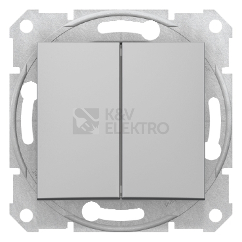 Sedna, ovládač dvojitý tlačítkový, 10A, alu. řada výrobků: Sedna - balení: kompletní přístroj a karton s eurootvorem - připojení - svorky: bezšroubové svorky.