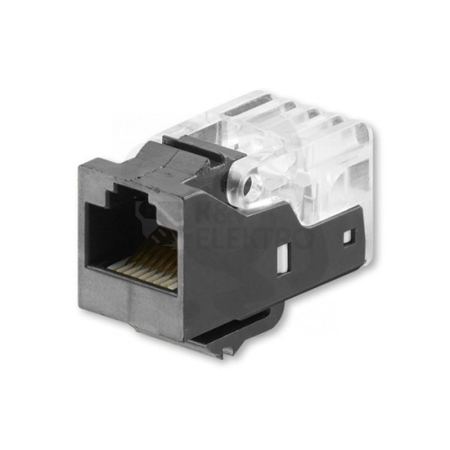 RJ45C5U - Keystone Jack CAT5E Samořezné keystone moduly jsou vyrobeny tak, aby splňovaly požadavky i těch nejnáročnějších aplikací. Nabízí vysokou spolehlivost, vynikající funkčnost a velmi jednoduchou instalaci. Splňují s velkou rezervou parametry kategorie 5e dle standardu EIA/TIA 568-A, 568-B.2 a ISO/IEC11801. Vyhovují směrnici RoHS. Jsou vhodné probudování „standardních" sítí s rychlostmi 10/100 Mbit/s, ale také „vysokorychlostních" gigabitových sítí 1000 Base-T. Samozářezové svorkovnice umožňují ukončení kabelů bez použití jakýchkoliv nástrojů pouhým uzavřením krytky keystone. Barevné značky na svorkovnicích dle T568A/B usnadní navedení jednotlivých barev vodičů do správných pozic. Rozměry(šxvxh): 14,50 x 19,50 x 31,80 mm. Min. životnost portu: 750 zapojení/odpojení Krytí kontaktů: 50 μ zlata a 100 μ niklu Min. životnost svorkovnice: 250 zařezání Zařezávací nože: phosfor, bronze Velikost vodiče: AWG 23-26 Materiál nekovových částí: FR plast podle UL94V0 Materiál krytu konektoru: PC, UL 94V0 Skladovací teplota: -40 - 70 °C Provozní teplota: -10 - 60 °C