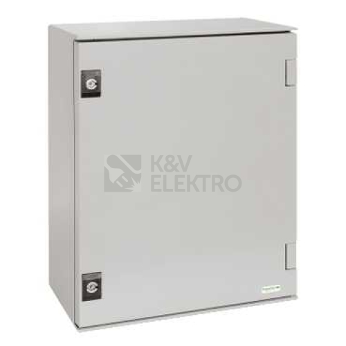 7035 Thalassa PLM. 430 x 330 x 200 mm. Vestavěná stříška, jeden kus odlitek s výřezy vzadu. Ocelová mont. deska. 2 zámky (3 mm zámek "motýlek"). Přístup zepředu. polyester s vyztuženým skleněným vláknem. Šedá RAL 7035. IP66, IK10, NEMA (13,4X) 960°C.