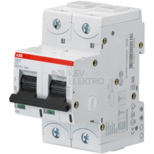 S802S-C10, jistič typu S800S , počet pólů: 2, vypínací charakteristika: C, jmenovitý proud: 10A, s klecovou svorkou, Icu = 50 kA (240 / 415V AC)