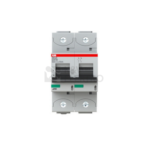 S802S-UCK100, jistič typu S800S, vypínací charakteristika: K , počet pólů: 2, jmenovitý proud 100A, napětí 250V DC, Icu = 50 kA (500V DC)