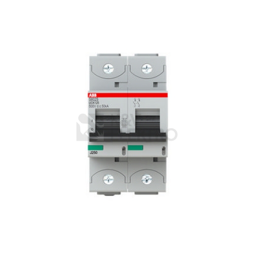 S802S-UCK125, jistič typu S800S, vypínací charakteristika: K , počet pólů: 2, jmenovitý proud 125A, napětí 250V DC, Icu = 50 kA (500V DC)