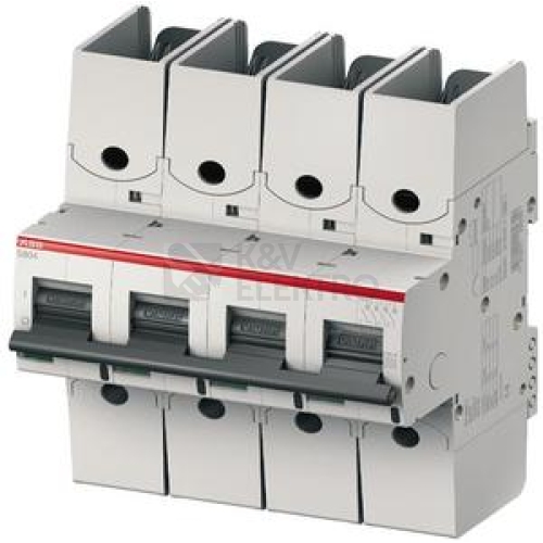 S804S-C100-R, jistič typu S800S , počet pólů: 4, vypínací charakteristika: C, jmenovitý proud: 100A, s přípojnicí na kabelové oko, Icu = 50 kA (240 / 415V AC)