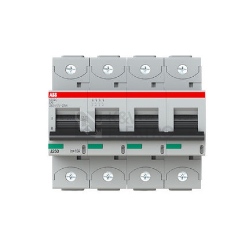 S804C-C10, jistič typu S800C , počet pólů: 4, vypínací charakteristika: C, jmenovitý proud: 10A, s klecovou svorkou, Icu = 25 kA (240 / 415V AC)