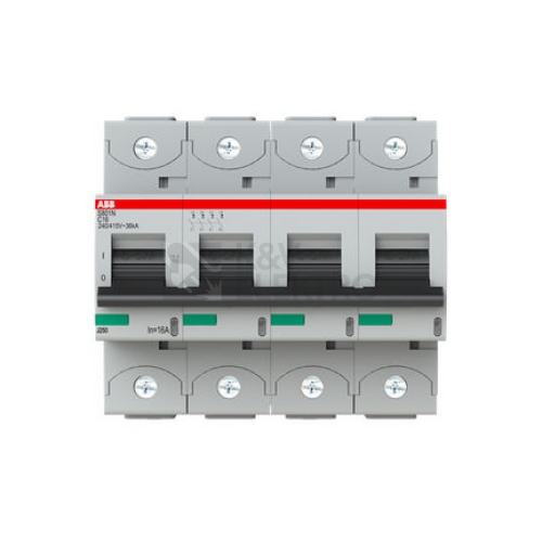 S804N-C16, jistič typu S800N , počet pólů: 4, vypínací charakteristika: C, jmenovitý proud: 16A, s klecovou svorkou, Icu = 36 kA (240 / 415V AC)