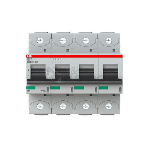 S804N-C63, jistič typu S800N , počet pólů: 4, vypínací charakteristika: C, jmenovitý proud: 63A, s klecovou svorkou, Icu = 36 kA (240 / 415V AC)