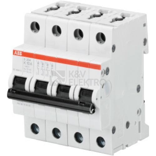 S204-K13, 4 fázový jistič, jmenovitý proud In: 13 A, vypínací charakteristika: K, vypínací schopnost Icn: 6 kA