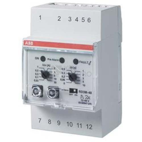 Chráničové relé pro externí transformátor RD3M-48, Un: 12-48 a.c./d.c., 50-60Hz/kmitočtový filtr: 150Hz fT=400Hz, předalarmový práh: 60%