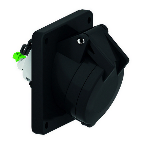 CEE zásuvka vestavná šikmá, Quick-Connect16A 4p (3P+PE) 400V (380 do 415V~) 6h IP44 frekvence: 50 a 60Hz kód barvy: červená RAL 3000 kontakty: nosič kontaktů je vyroben z materiálu odolného vůči vysokým teplotám, kontakty jsou vyrobeny z mosazi, povrch kontaktů je poniklovaný maximální průřez vodiče: 4,0 mm2materiál krytu: polyamid způsob připojení: bezšroubové pružinové klecové svorkybarva: kryt černý, víčko sklopné černé, kryt šedý rozměry: výška 85 mm, šířka 85 mm, hloubka 102 mm rozměr příruby: svisle 85 mm, vodorovně 85 mm rozteč montážních otvorů: vodorovně 70 mm, svisle 70 mm další technické vlastnosti:sklon 20°bezšroubové připojení vodičů QUICK-CONNECT je ověřený, trvanlivý, bezpečný a zcela bezúdržbový systém odolný proti nárazům, vibracím a výkyvům teplot. QUICK-CONNECT s optimálně nastaveným přítlakem svorky na připojovaný vodič zcela eliminuje nedostatky šroubových spojení (možnost přetažení, nebo nedotažení šroubků, slaněné vodiče není třeba ukončovat dutinkami)barevné označení vstupů, pro správné zapojení jednotlivých vodičů (dodržení sledu fází u třífázové elektrické soustavy)