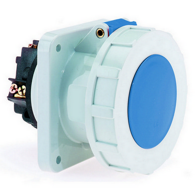 CEE zásuvka vestavná přímá63A 4p (3P+PE) 230V (200 do 250V~) 9 h IP67 frekvence: 50 a 60Hz kód barvy: modrá RAL 5015 kontakty: nosič kontaktů je vyroben z materiálu odolného vůči vysokým teplotám, kontakty jsou vyrobeny z mosazi, povrch kontaktů je poniklovaný maximální průřez vodiče: 25,0 mm2materiál krytu: polyamid způsob připojení: šroubová rámová svorkabarva: víčko sklopné modré, bajonetový uzávěr šedý, kryt šedý rozměry: výška 114 mm, šířka 111 mm, hloubka 133 mm rozměr příruby: svisle 107 mm, vodorovně 100 mm rozteč montážních otvorů: vodorovně 85 mm, svisle 77 mm