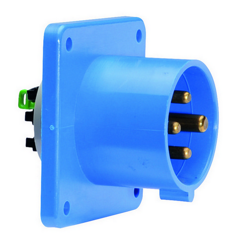 CEE přívodka vestavná přímá, Quick-Connect32A 4p (3P+PE) 230V (200 do 250V~) 9 h IP44 frekvence: 50 a 60Hz kód barvy: modrá RAL 5015 kontakty: nosič kontaktů je vyroben z polyamidu, kontakty jsou vyrobeny z mosazi maximální průřez vodiče: 6,0 mm2materiál krytu: polyamid způsob připojení: bezšroubové pružinové klecové svorky barva: kryt modrý rozměry: výška 75 mm, šířka 75 mm, hloubka 96 mm rozměr příruby: svisle 75 mm, vodorovně 75 mm rozteč montážních otvorů: vodorovně 60 mm, svisle 60 mm další technické vlastnosti:instalační otvor je posunutý od středu příruby o 2mmbezšroubové připojení vodičů QUICK-CONNECT je ověřený, trvanlivý, bezpečný a zcela bezúdržbový systém odolný proti nárazům, vibracím a výkyvům teplot. QUICK-CONNECT s optimálně nastaveným přítlakem svorky na připojovaný vodič zcela eliminuje nedostatky šroubových spojení (možnost přetažení, nebo nedotažení šroubků, slaněné vodiče není třeba ukončovat dutinkami)barevné označení vstupů, pro správné zapojení jednotlivých vodičů (dodržení sledu fází u třífázové elektrické soustavy)