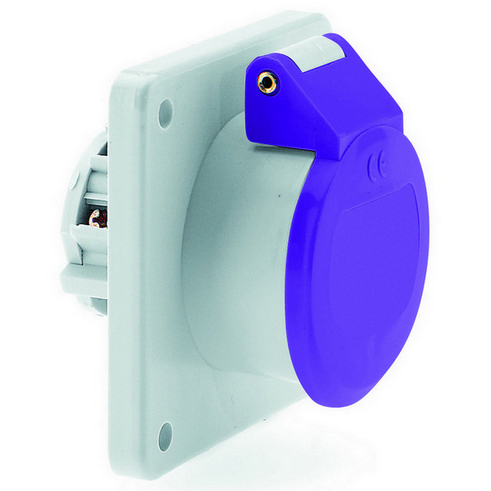 CEE nízkonapěťová vestavná zásuvka přímá32A 3p (3P) 24V (20 do 25v) bez pomocného nosu nebo drážky (určení hodinového úhlu) IP44 frekvence: 50 a 60Hz kód barvy: fialová RAL 4005 kontakty: nosič kontaktů je vyroben z polyamidu, kontakty jsou vyrobeny z mosazi, povrch kontaktů je poniklovaný maximální průřez vodiče: 10,0 mm2materiál krytu: polyamid způsob připojení: se šroubovými svorkami barva: kryt šedý, víčko sklopné fialové rozměry: výška 67 mm, šířka 55 mm, hloubka 59 mm rozměr příruby: svisle 55 mm, vodorovně 55 mm rozteč montážních otvorů: vodorovně 45 mm, svisle 45 mm