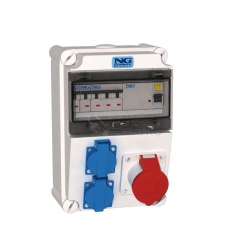 Zásuvka 1x CEE 16A 5p 400V, 2x 16A 230V, chránič 4p, jističe