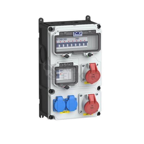 Zásuvka 2x CEE 16A 5p 400V, 2x 16A 230V, chránič 4p, jističe ##VIDEO:https://www.youtube.com/embed/rcxt-Nx_7-Y##