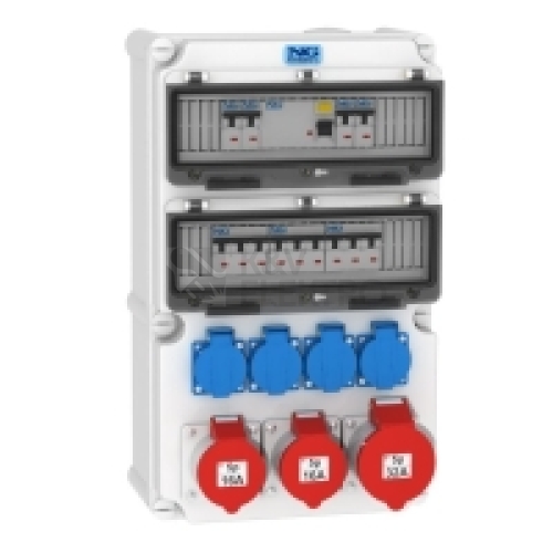 Zásuvka 1x CEE 32A 5p 400V, 2x CEE 16 5p 400V, 4x 16A 230V, chránič 4p, jističe