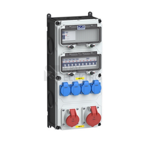 Zásuvka 1x CEE 32A 5p 400V, 1x CEE 16A 5p 400V, 4x 16A 230V, chránič 4p, jističe
