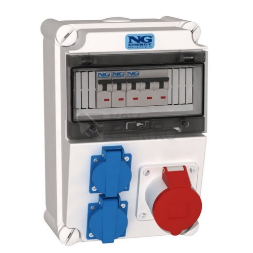 Zásuvka 1x CEE 16A 5p 400V, 2x 16A 230V, jističe