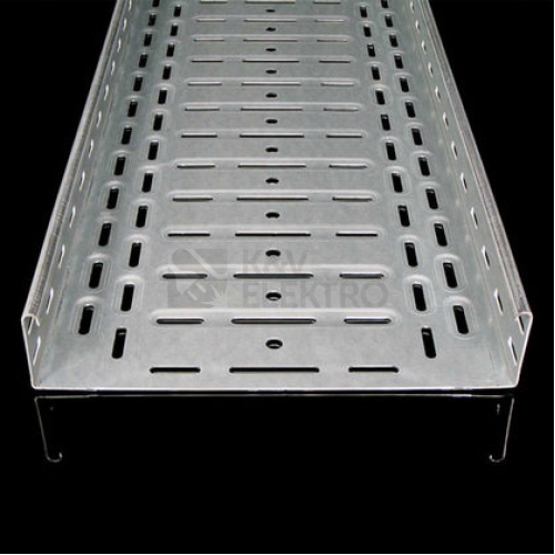 Kabelový žlab KZ 60x200 z plechu tloušťky 1,5mm pro spojení pomocí spojky, v povrchové úpravě žárový zinek, děrovaný, opatřený embosy pro zvýšení pevnosti a tuhosti, certifikovaný pro systémy se zachováním funkčnosti při požáru