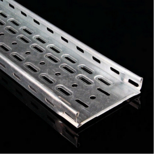Kabelový žlab s integrovanou spojkou KZI 35x150 z plechu tloušťky 0,75 mm v povrchové úpravě žárový zinek, děrovaný, opatřený embosy pro zvýšení pevnosti a tuhosti.