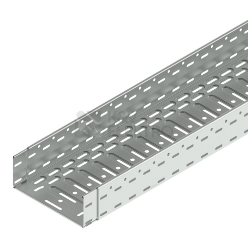 Kabelový žlab s integrovanou spojkou NKZI 100x250 z plechu tloušťky 0,70 mm v povrchové úpravě obvodové lakování, děrovaný, opatřený embosy pro zvýšení pevnosti a tuhosti.