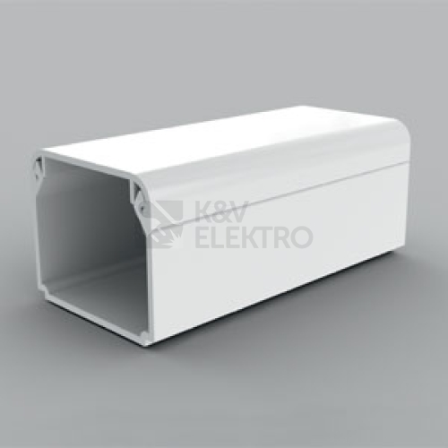 Lišta hranatá 30x25, bílá, 3 m, folie. Klasický tvar. Určena pro montáž na stěnu, nebo na strop. Dvojitý zámek víka zvyšuje tuhost lišty a zajišťuje pevnější fixaci víka.
