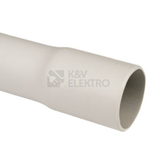 Tuhá hrdlovaná elektroinstalační trubka PVC Ø 63 mm, 33411, mechanická odolnost 750N/5cm, světle šedá, délka 2 m, lze montovat do prostoru s nebezpečím výbuchu hořlavých plynů a par, nebezpečná zóna 2 a do prostor s nebezpečím výbuchu prachu, nebezpečná zóna 22.