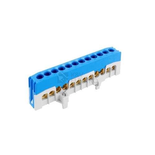 Můstek N 12-F2 (svorkovnice 12x16mm2), krytý IP20, modrý, 63A, na DIN, rozměr 90x12x27mm
