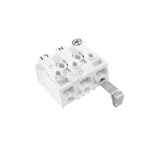 3-pólová svorkovnice pro průmyslová svítidla - SLK 3/3 (s potiskem E-N-L), bezšroubové připojení vodičů, z PC (Polykarbonátu), bílá /88167526