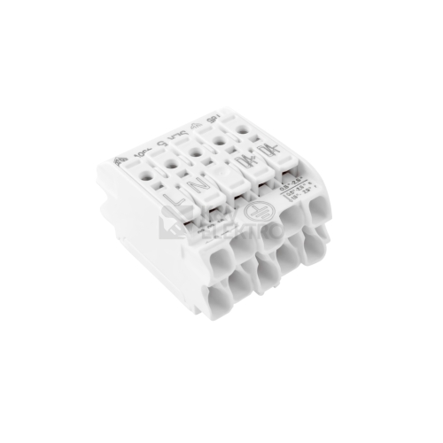 5-pólová svorkovnice pro průmyslová svítidla - SLK 5/5 (s potiskem L-N-E-DA- DA+), bezšroubové připojení vodičů, z PC (Polykarbonátu), bílá /88167554