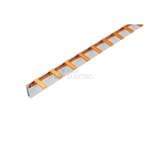 Propojovací lišta S-1L-1000/36 ISO, kolík (jazýček), 1pól., 130A, rozteč 17,8mm, 36mm2, 1m, připojovacích míst = 57, rozměr kolíku 6,5x13mm, ISO = sklon 90°, koncovka EK-D-1/25/36