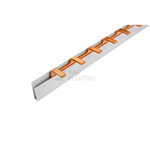 Propojovací lišta S-1L-27-1000/36 ISO, kolík (jazýček), 1pól., 130A, rozteč 27mm, 36mm2, 1m, připojovacích míst = 37, rozměr kolíku 6,5x13mm, ISO = sklon 90°, koncovka EK-D-1/25/36