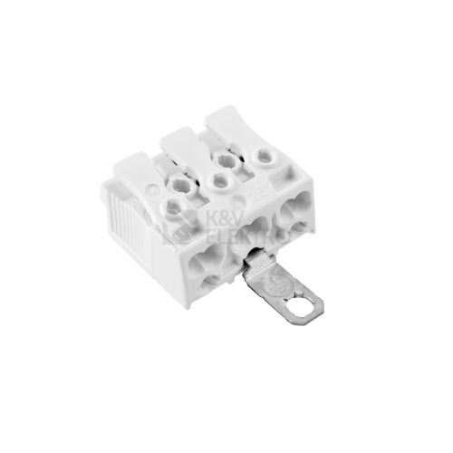 Popis produktu Svorkovnice SLK 3/3 E-SCHR (bez potisku) pro svítidla, bezšroubová, PC, bílá /88167570 Speciálně pro výrobce svítidel nabízíme svorky nejen pro průmyslová svítidla. Tyto miniaturní svorky se vyrábí ve 2, 3, 4, či 5-pólovém provedení a s potiskem pólu či bez potisku. Od 3-pólových svorek nabízíme i zemnící plíšky ochranného konktaktu a to v provedení "E-SCHR" (klasický plíšek, který se šroubem spojí s kovovou částí svítidla, průměr otvoru 4,3 mm), "E-ST" ("zacvakávací kovový pin"), "E-PIEC" (kovový zoubek přichycený ze spodu svorky). Charakteristické znaky pro rakouského výrobce electro-terminal jsou precizní zpracování patentovaného vnitřního upínacího mechanizmu vodiče a použití kvalitního polyamidového pouzdra. Svorky jsou dimenzovány pro jmenovité napětí do 450 V a proudu do 24 A, spolehlivě pracují do max. teploty okolí 85°C. Z instalační strany je k dispozici: celkem 6 vstupních otvorů pro vodiče o průřezu: 1,0 - 2,5 mm2 Z přístrojové strany je k dispozici: celkem 9 vstupních otvorů pro vodiče o průřezu: 3x 0,5 - 1,5 mm2 3x 0,5 - 2,5 mm2 3x 0,5 - 0,75mm2 Délka odizolování pro vodiče je: 8 - 9 mm pro 0,5 - 1,0 mm2 9 - 10 m pro 1,5 - 2,5 mm2