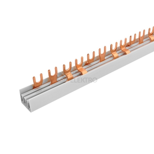 Propojovací lišta G-4L-210/16, vidlička, 4pól., 80A, rozteč 17,8mm, 16mm2, 210mm, připojovacích míst = 12, pro šroub M5-M6, koncovka EK-C-4/16