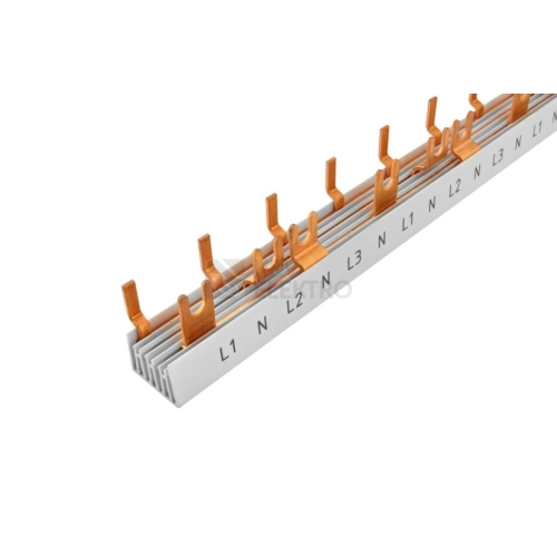 Propojovací lišta G/S-L1+N-L2+N-L3+N-1000/16P, vidlička+kolík, 4-pól., 80A, rozteč 17,8+9mm, (37P+37N) přípojných míst, pro 1,5TE přístroje (např. 1+N pól. jističe)