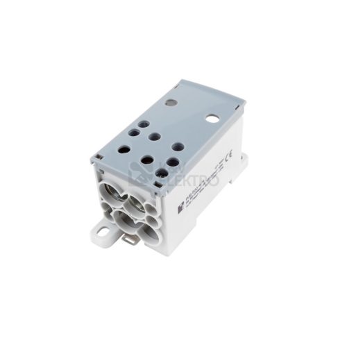 Blok pro rozdělení fází PVB 500-4/4, 1pólový, pro AL/CU vodiče, jmenovitý proud 500A, jmenovité napětí 690V, barva šedá / průhledné víko, montáž na DIN lištu / PANEL, krytí IP20, vstup 1x240mm2, výstup 4x70mm2, 4x16mm2