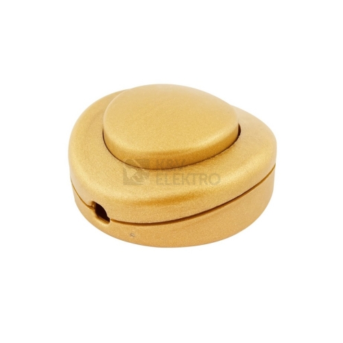 Vypínač plastový nožní (350/VP/T) - zlatý, 1pólový, 2A, 250V, rozměry: průměr celkový 65mm, průměr tlačítka 41mm, výška základny bez tlačítka 23mm