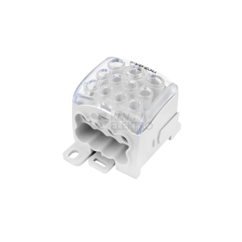 Blok pro rozdělení fází PDB 270 (dříve značeno PVB 230), 1pólový, pro CU vodiče, jmenovitý proud 270A, jmenovité napětí 690V, barva šedá / průhledné víko, montáž na DIN lištu / PANEL, krytí IP20, vstup 1x95mm2, výstup 2x35mm2, 8x25mm2