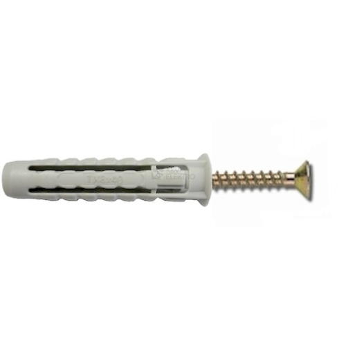Hmoždinka universální TXPA-S 10x50 - s vrutem, pro vrut o průměru 6-8mm, průměr vrtáku 10mm, hloubka vrtu 60mm