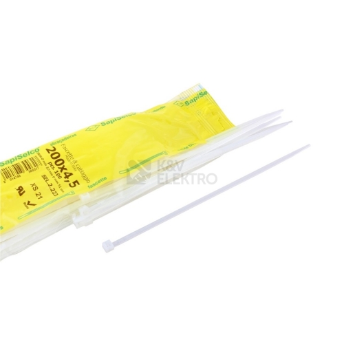 Vázací (stahovací) pásky 200x4,5mm - bílá, PA 6.6, (balení=100ks), SEL.2.223
