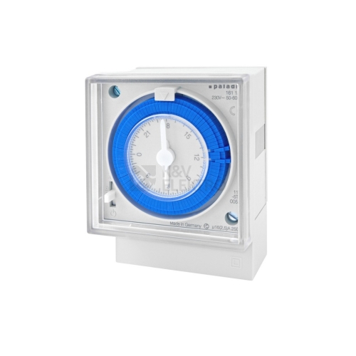 Hodiny spínací PALADIN 161120, analogové, denní, šířka 72 mm, montáž na panel, 230V 50-60Hz, bez zálohy chodu, šedé, krytí IP20