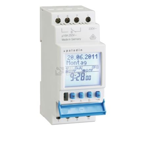 Hodiny spínací PALADIN 172419pro, digitální, 1kanál, 2moduly, se zálohou, šedé, na DIN, roční program, 300 úložných míst