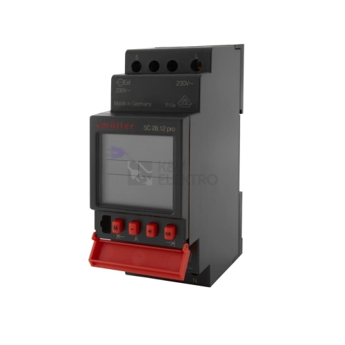 Hodiny spínací PALADIN SC 28.12, digitální, 2kanály, 2moduly, se zálohou, černé, na DIN, týdenní program, 100 úložných míst